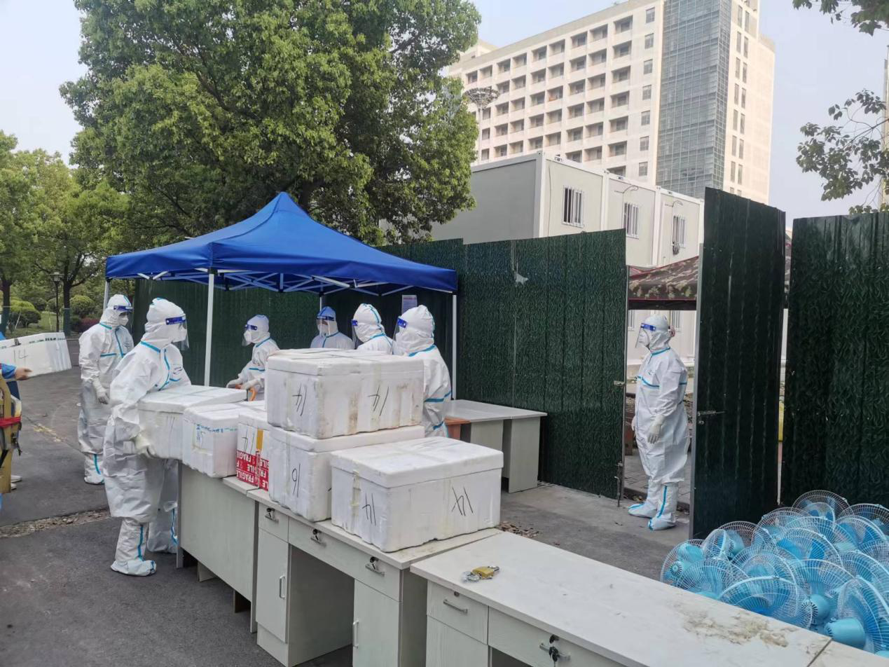 4月15日晚,接上級單位指令,公司連夜迅速組建一支14人的應(yīng)急突擊隊(duì)伍,進(jìn)駐謝家集區(qū)謝李大井醫(yī)學(xué)觀察隔離方艙,支援后勤保障服務(wù)工作。應(yīng)急隊(duì)成員經(jīng)醫(yī)護(hù)人員專業(yè)防護(hù)知識培訓(xùn)后,迅速熟悉現(xiàn)場并明確分工,嚴(yán)格按照方艙醫(yī)院的標(biāo)準(zhǔn)和要求開展保障服務(wù)工作。