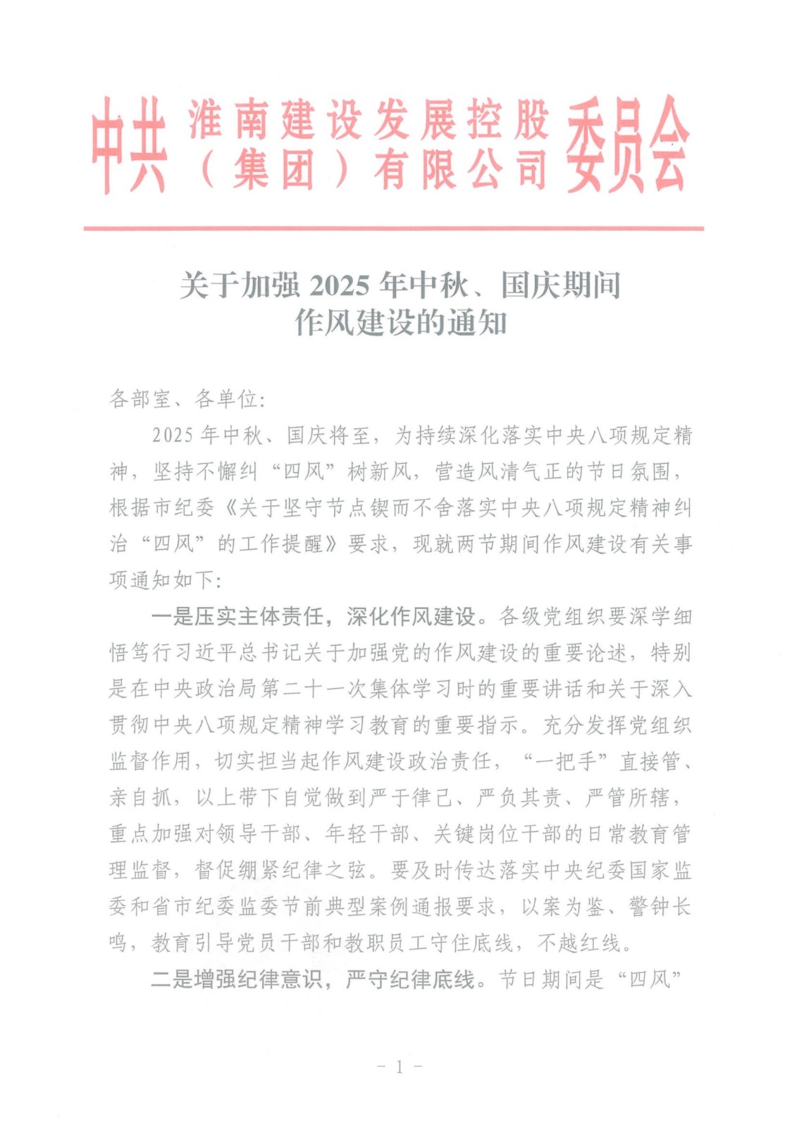 關于加強2025年中秋、國慶期間 作風建設的通知